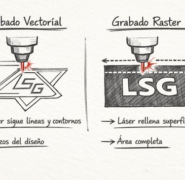 Existen dos formas principales de trabajar el grabado laser: vectorial ("marcado laser") y raster ("grabado laser").